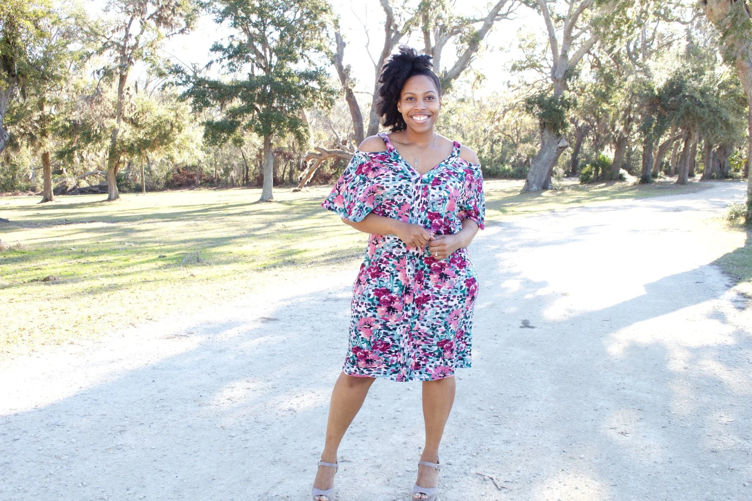 The first fabric that I created with was their Bentota Bloom Liverpool Knit! I thought the colors were beautiful so I got it, but was a little unsure what I wanted to make with it. But first lets talk about Liverpool knit in case you're not sure what it is.